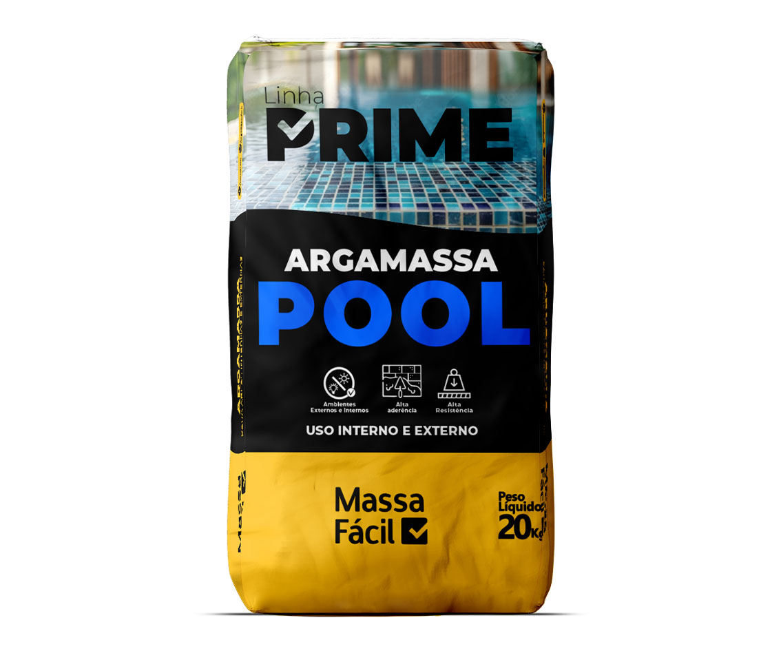Resistência à pressão da água: piscinas exercem pressão constante sobre a argamassa. A Prime Pool possui resistência mecânica superior, suportando empuxo e esforços típicos de piscinas cheias ou vazias.